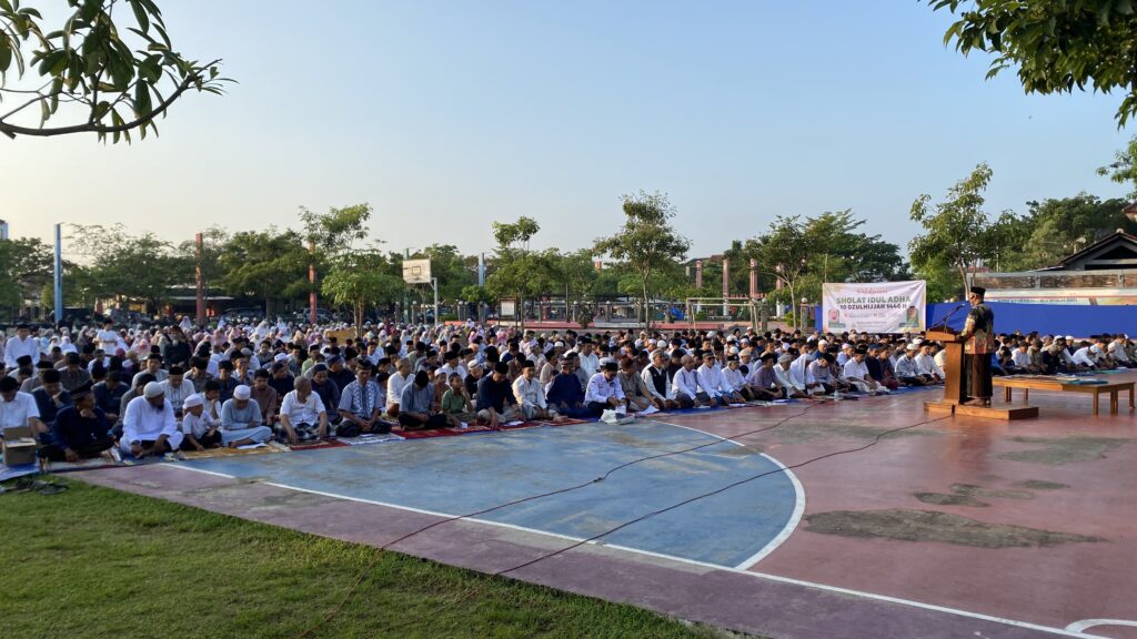 Ratusan jamaah dari berbagai penjuru wilayah Kecamatan Purwodadi dan sekitarnya mulai berdatangan sejak pukul 05.30 WIB. Mereka memenuhi area taman dengan tertib, membawa perlengkapan ibadah dan penuh semangat menyambut hari raya kurban. Sholat Id dimulai pukul 06.15 WIB dengan imam Ustadz Fahmi Izzudin dan khatib Ir. H. Jati Purnomo, M.Si, yang menyampaikan khutbah bertema “GHIRAH, ISLAH DAN HIKMAH ‘IDUL ADHA”.